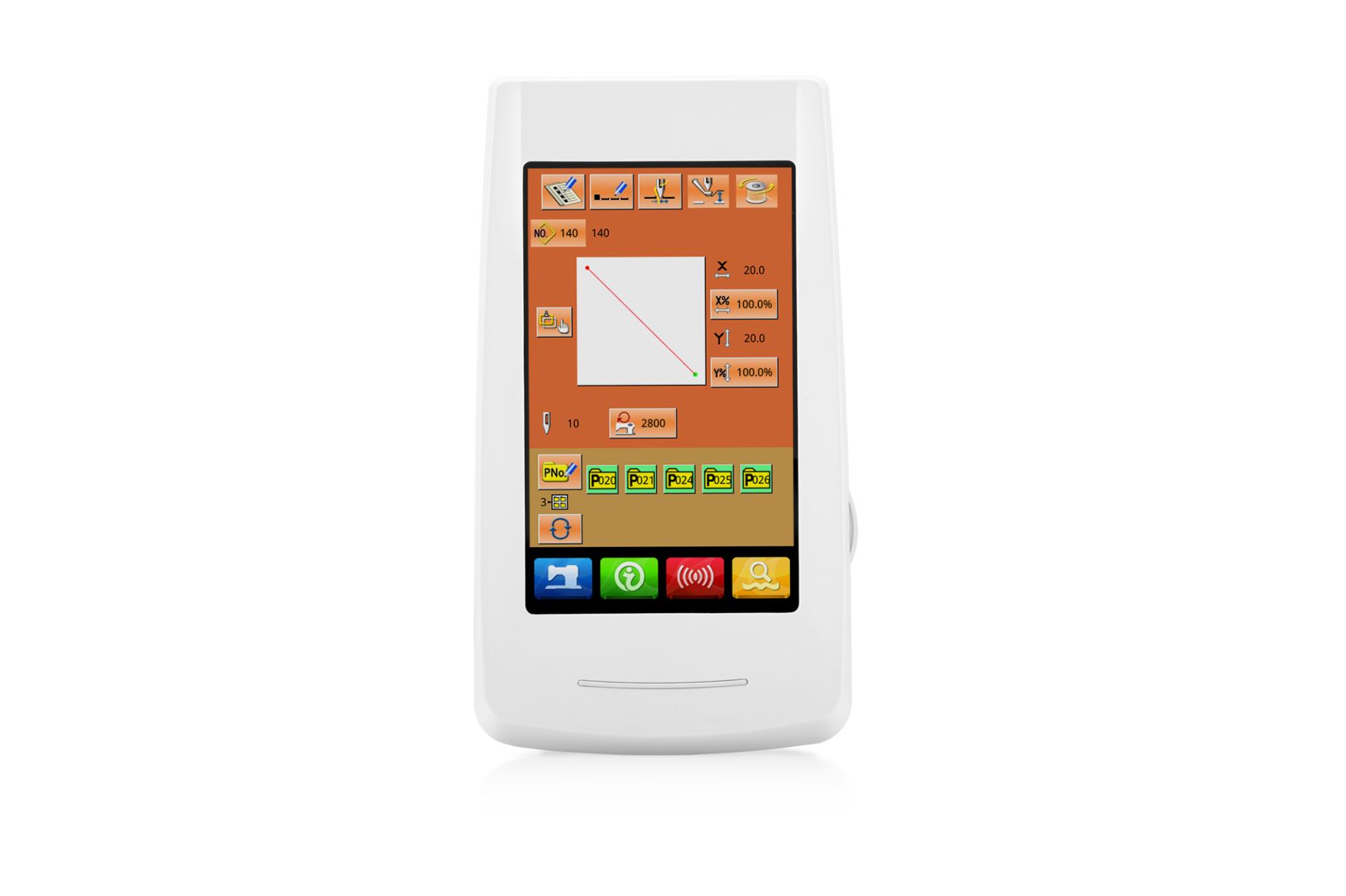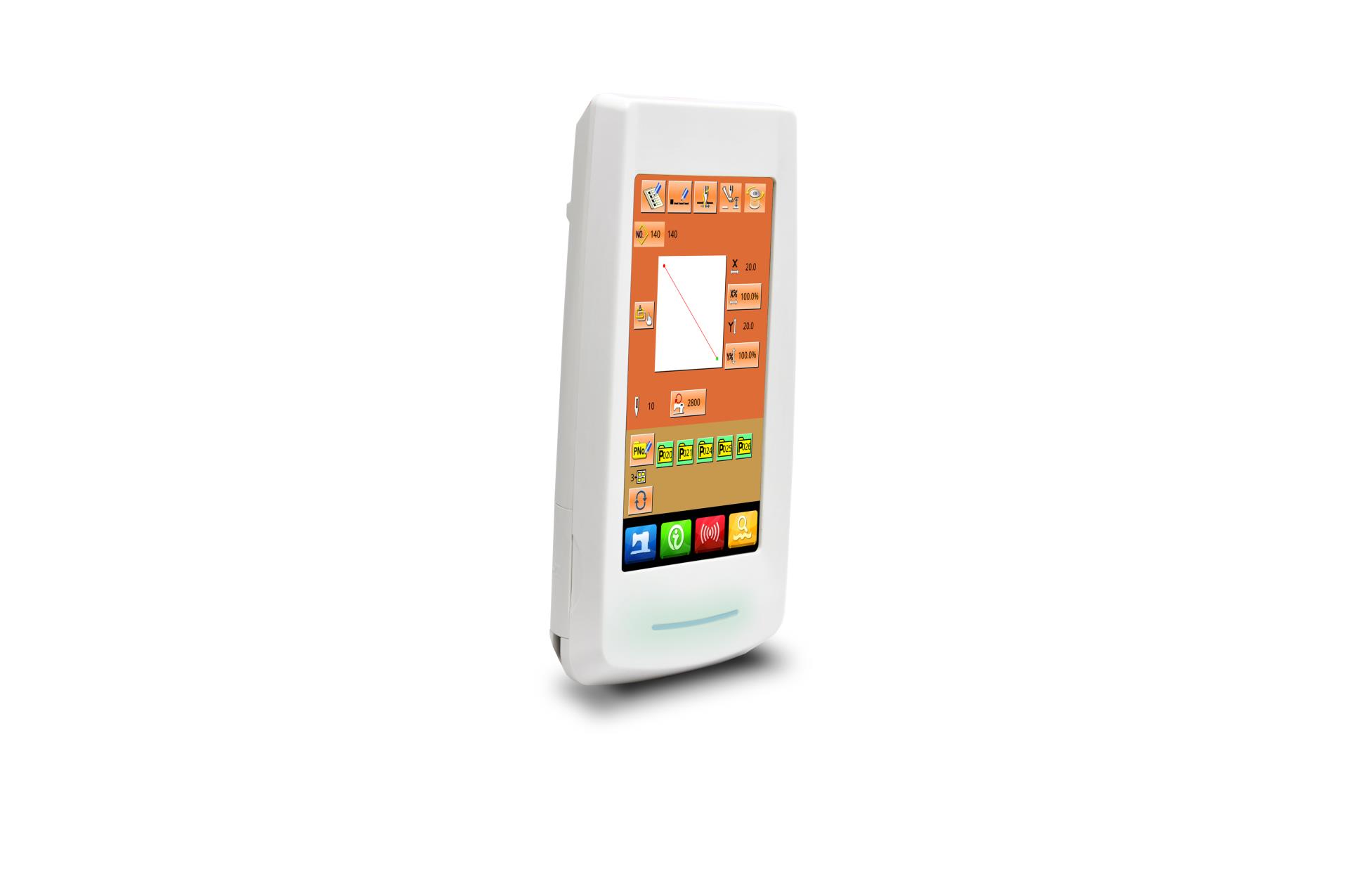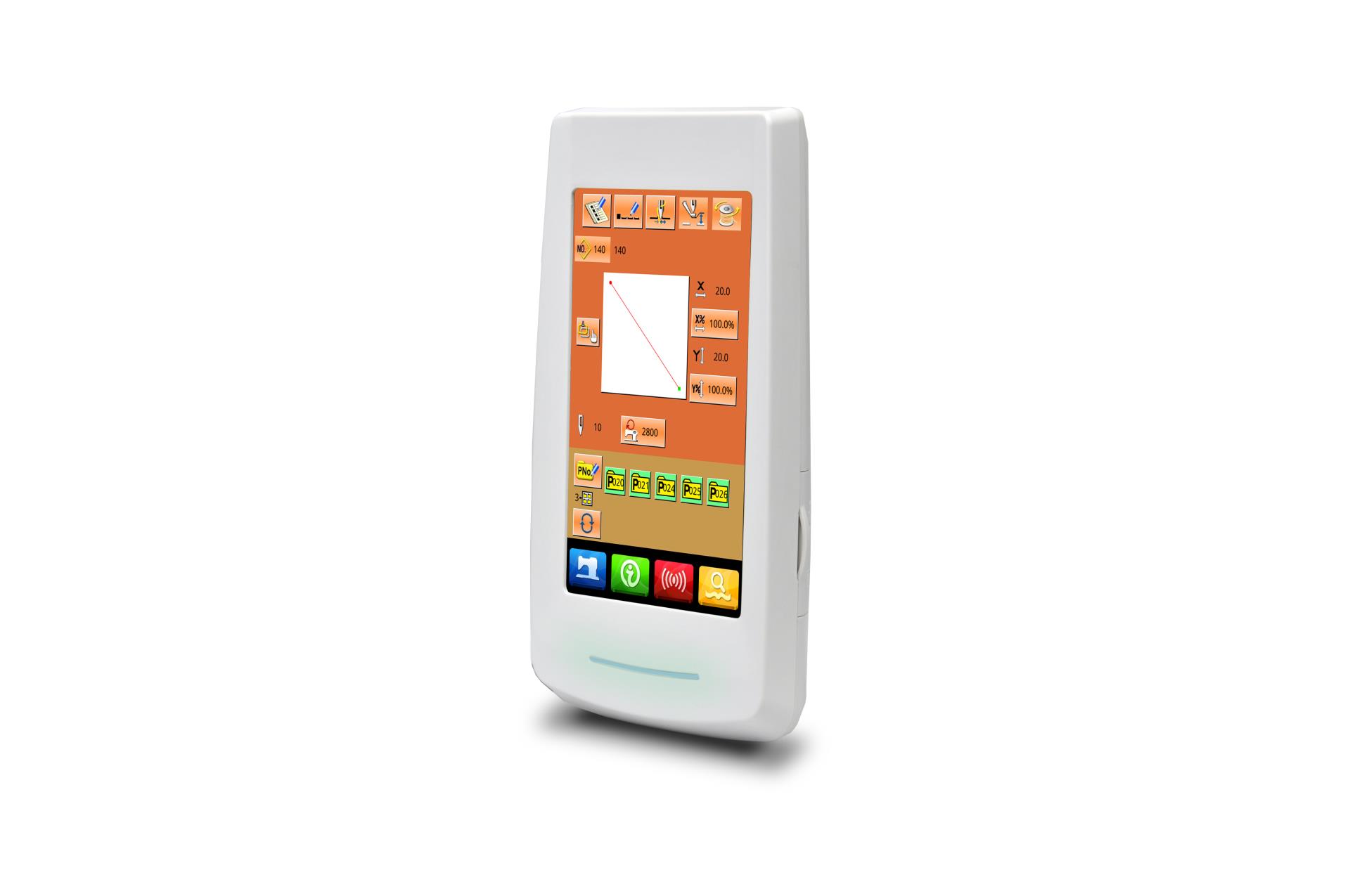 多种操作面板可供用户选择,分别为10 英寸/7 英寸/5 英寸真彩液晶触摸屏面板,点阵液晶面板,数码管按键面板,满足高中低档各种机型操作特点的需求。提供花样数据输入输出接口,使用通用USB 接口方式。同时可根据客户的特殊需求定制个性化操作面板的设计方案。操作面板采用图形加多语言注解方式具有高度的可读性,对于初次使用电脑缝纫用户来说非常容易上手,具有优秀的界面友好度。