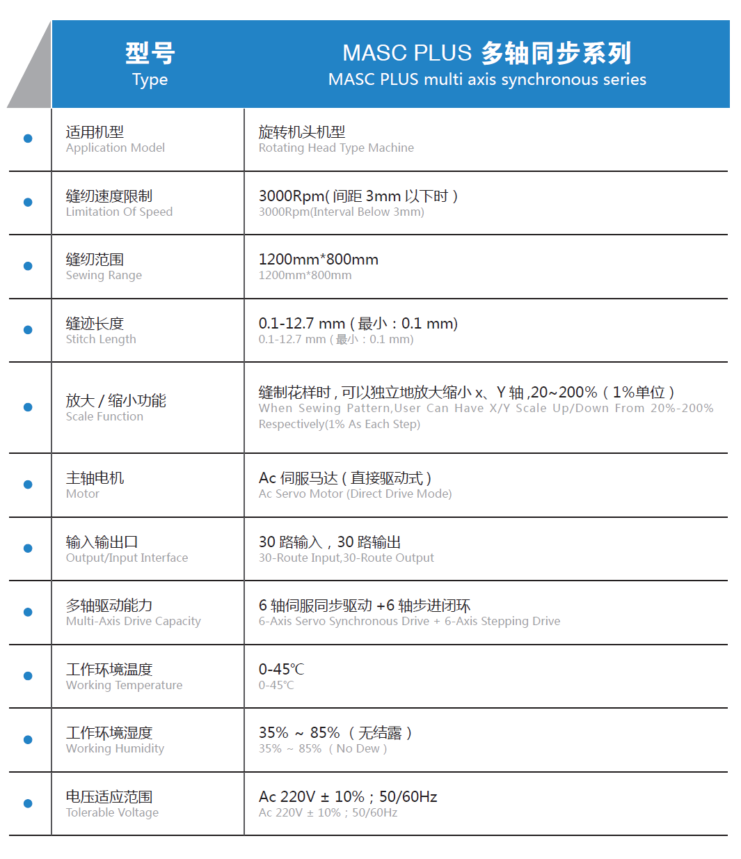 支持随动中压脚技术,缝制转速可达3000RPM;