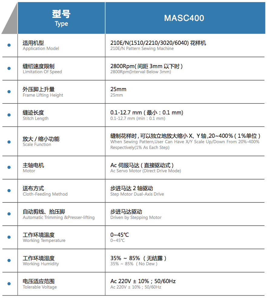 MASC400 Computerized Control System for High Speed Pattern Sewing Machine