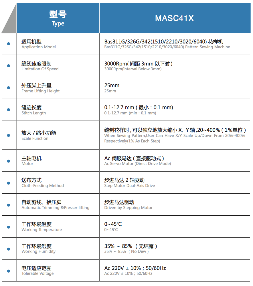 - MASC41X Computerized Control System for High Speed Pattern Sewing Machine