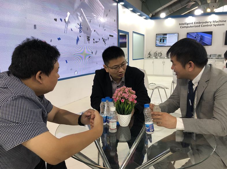 刺绣机电控产品方面向海外客户集中展示了多款最新产品:EMBMATE系列金属质感刺绣机电控系统;A系列集成一体化电控系统;单头机电控A15,家用机电控A25。软件产品大豪云平台,EMCAD刺绣制版软件,全系列开关电源产品,移动式自动换底线,固定式磁编,全系列特种绣装置及控制等重磅产品,再次引领行业的技术革新,让现场观展客户惊喜不断。