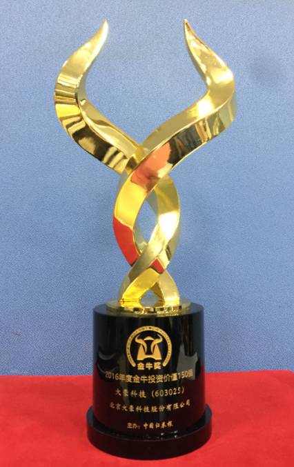 大豪科技荣获2016年度“中国上市公司金牛奖”