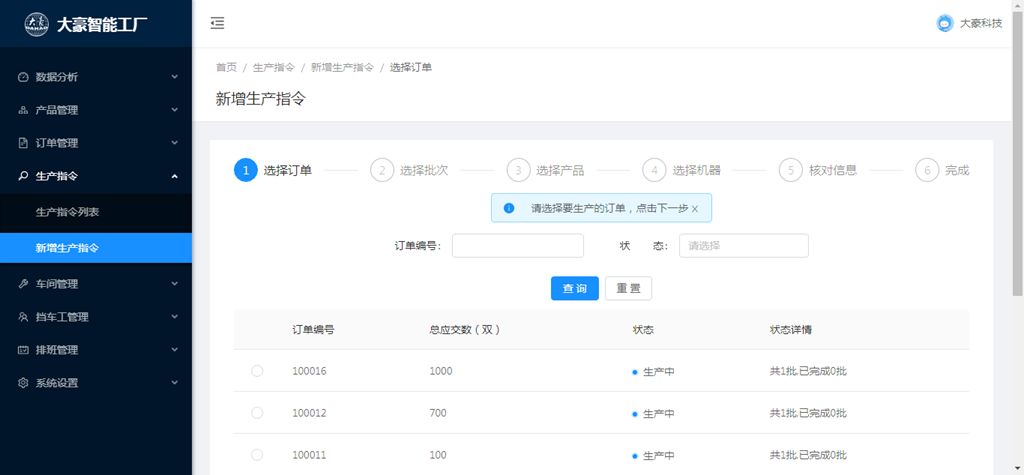 支持订单中的产品信息下发到生产指令下发到袜机上