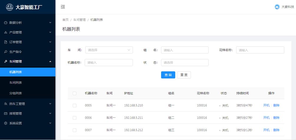 DH-NET大豪明德智能工厂网络管理系统(袜机中文版)为袜机加工企业提供全方位的机器联网管理、人力资源管理、生产运营监控的解决方案,高效的实现人、设备与产品之间实时联通、精确识别、有效交互与智能控制。