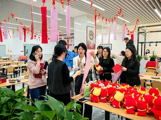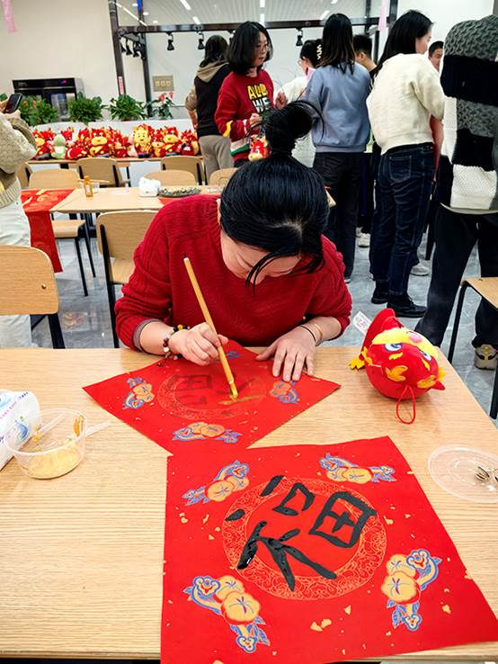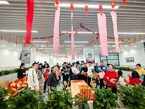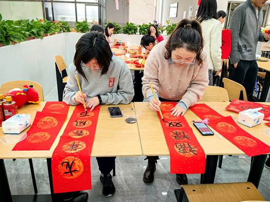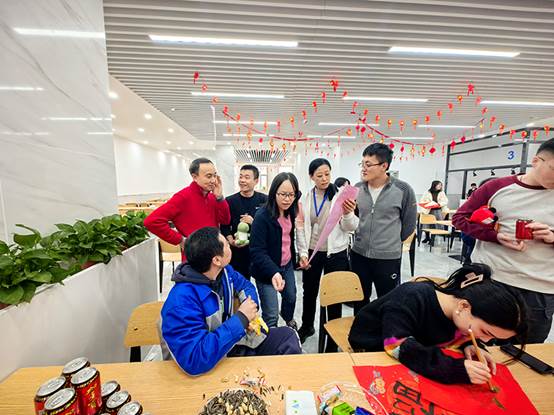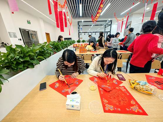 2月1日下午,在农历龙年即将到来之际,工会组织“迎春送福”联欢活动。来自各个部门的员工齐聚一堂,写“福”字,猜灯谜,开开心心过大年。