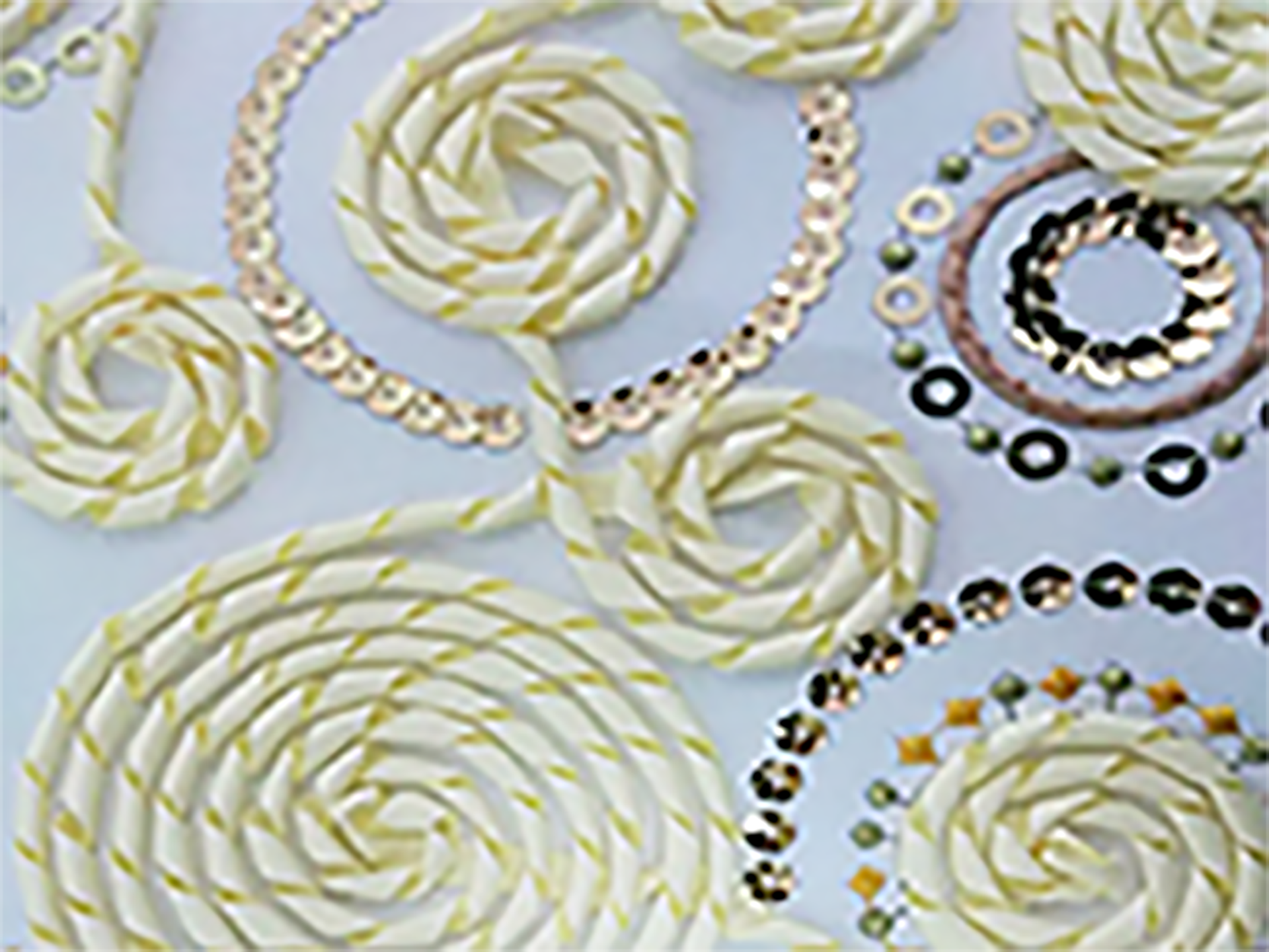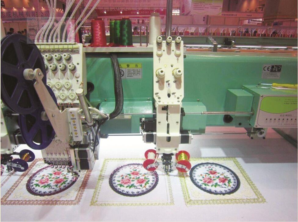 •       随着简易绳绣装置作为一种经济型绳绣实现方案逐步为市场接受,在原有平绣、 盘带绣、金片绣三合一机型基础上,平绣机头增加简易绳绣装置,配合盘带绣装 置,也可以实现绳绣和缠绕绣、带绣组合绣品效果。大豪电控支持同一台机器上实现盘带绣和绳索绣的组合,并可以独立设置参数。