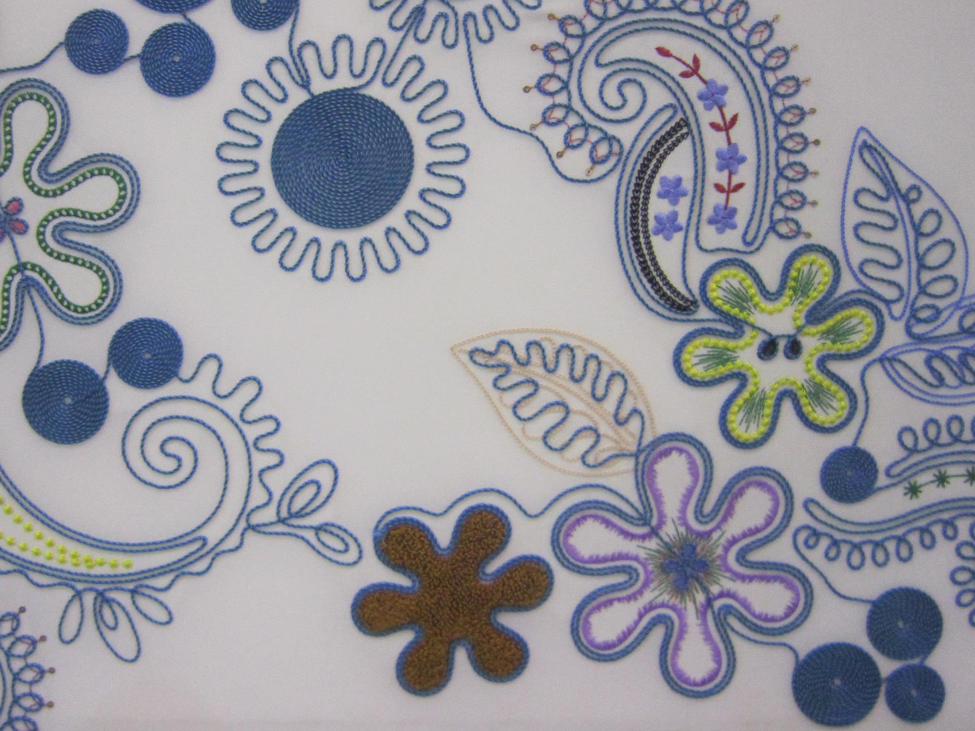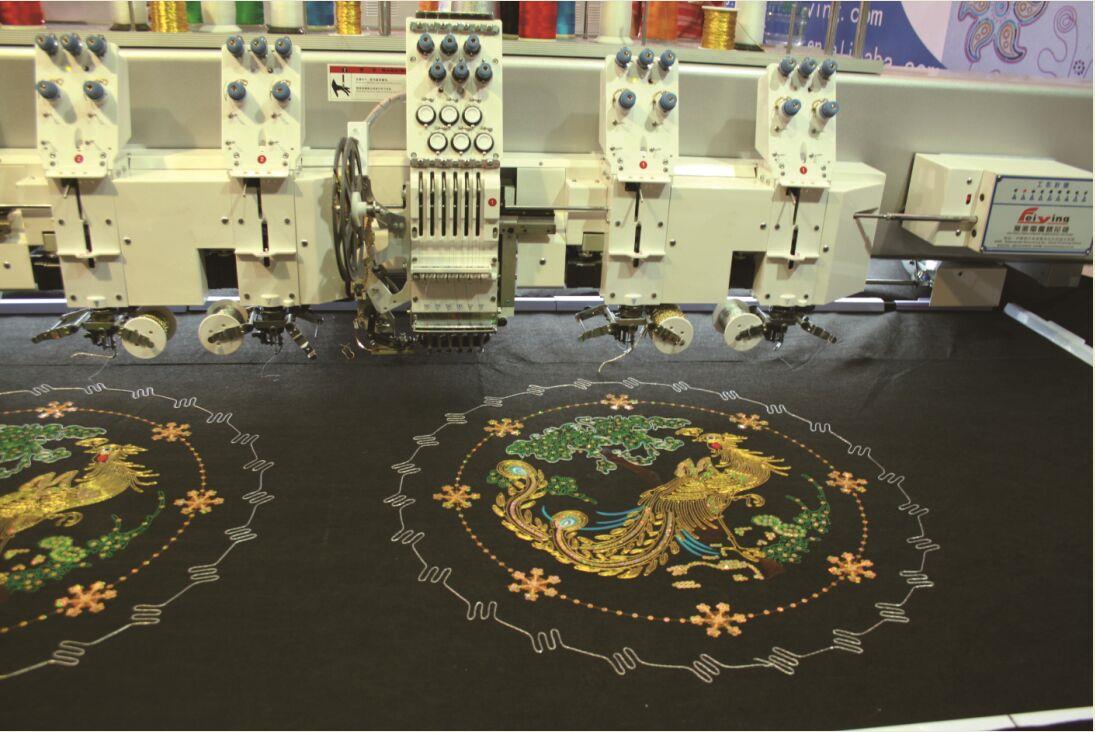 •      依托大豪先进的驱动曲线算法,可以非常好地实现平绣、金片绣、缠绕绣、Z1-Z9绣、盘带绣、羽状绣、叠带绣等多种绣 作方式组合,使绣品更加亮丽多彩。