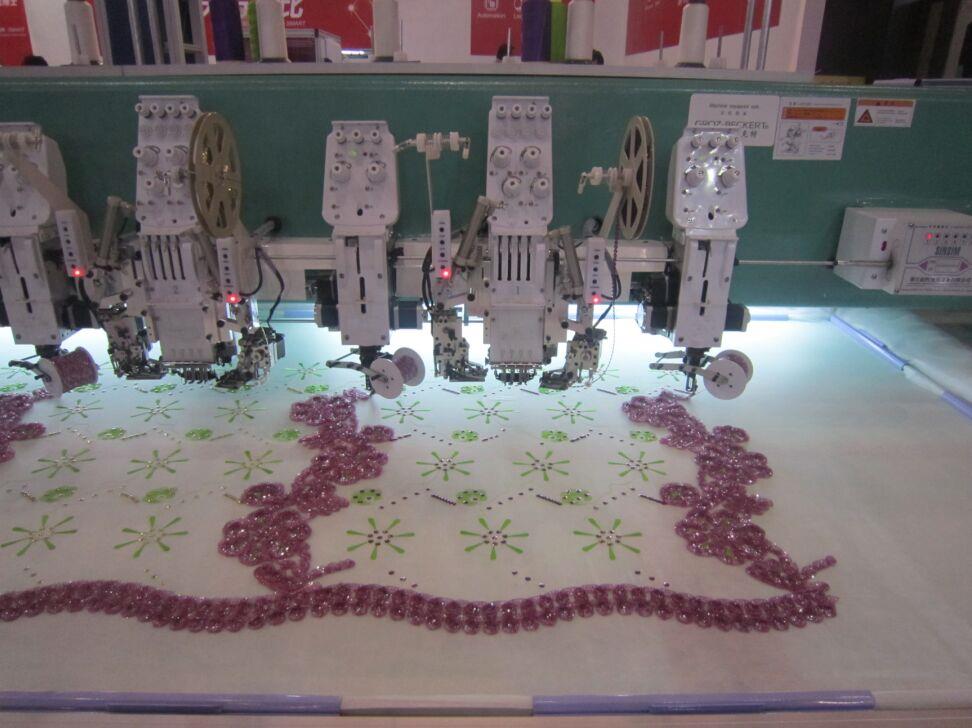 •        大豪电控充分挖掘电控系统控制资源,突破性的实现了两个盘带头和一个平绣机头的组合,4种盘带物料可以在一次加工中实现,加工过程更加方便、简单、灵活,节省您更换物料的时间和绣品对位的时间,帮助您实现更为复杂的设计工艺。